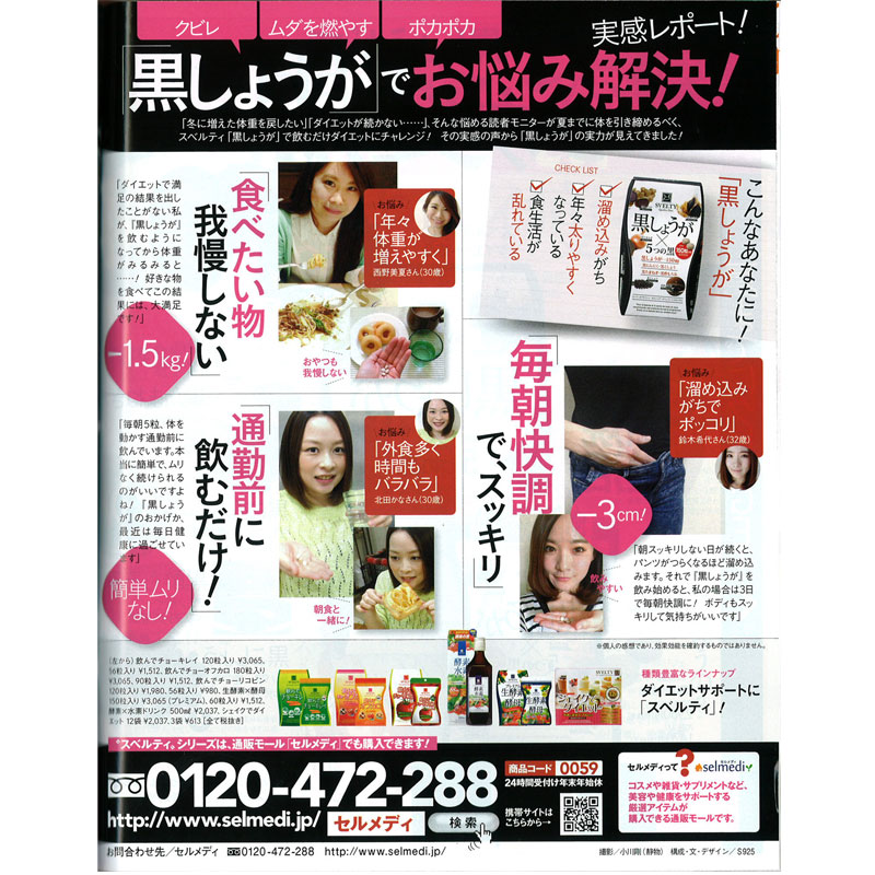 女性自身4月28日号(光文社)に「SVELTY黒しょうが」が掲載されました。